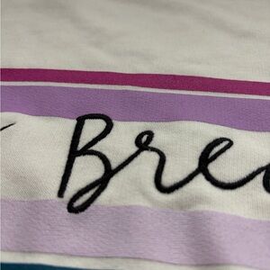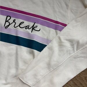 Soft cream sweatshirt with ribbed detailing, embroidered “Spring Break” with stripes across front. Casual and comfortable style. Never worn.
