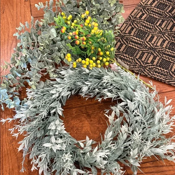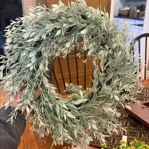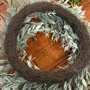 Enhance your home with this elegant faux floral wreath. Its sophisticated design adds a touch of style to any room.