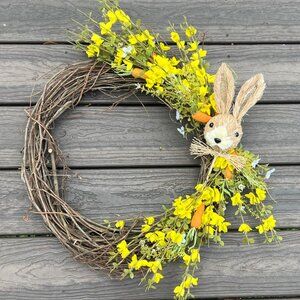 Spring Bunny Rafta Easter Wreath with Yellow Flowers with Carrots Home Decor