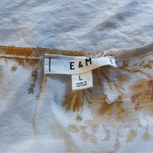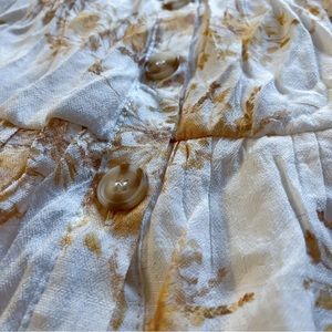 Sleeveless spring dress with a deep yellow floral pattern. This dress has adorable brown buttons that go down the front. The neckline is a slight v-neck. This dress is floral and flowy!