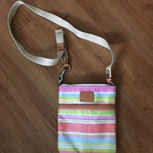 Cute, bright, Coach purse! Probably used three times, small mark on the front that is barely noticeable (Close up in photos above). Only selling because I never use it.