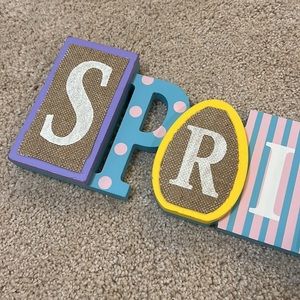Adorable wooden “SPRING” sign from Hobby Lobby. This is in LIKE NEW condition. This sign stands upright. It is 14 inches long and 4.75 inches tall at its highest point.