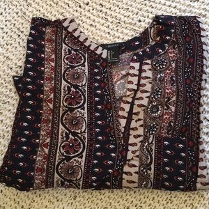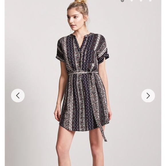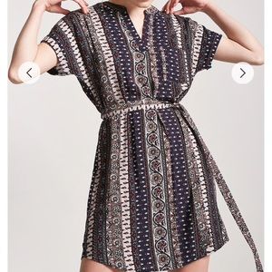 Brand new with tags. Beautiful piece so sunny days ahead. 100%rayon. Woven knit shift dress, ornate print in stripe design, short cuffed sleeves, chest patch pocket