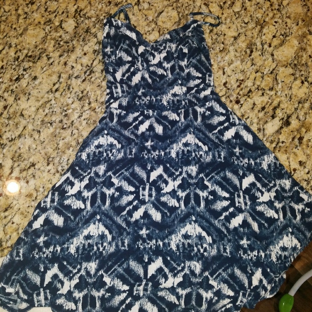 Aeropostale, size xs, flowy sweetheart top, blue and white tribal design, no damage, gently used, smoke free,