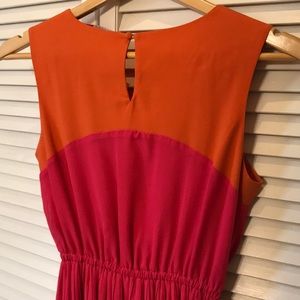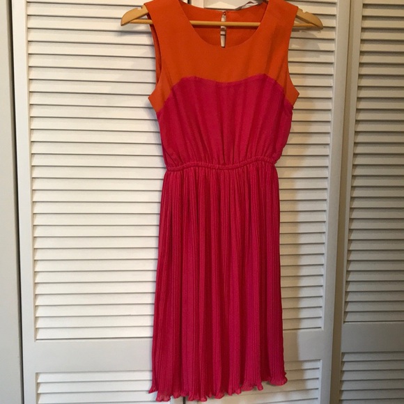Grab this dress perfect for graduations, weddings or showers this spring and summer! Orange and hot pink, hits couple inches above the knee. It’s a size 8, but runs small. In really great condition!
