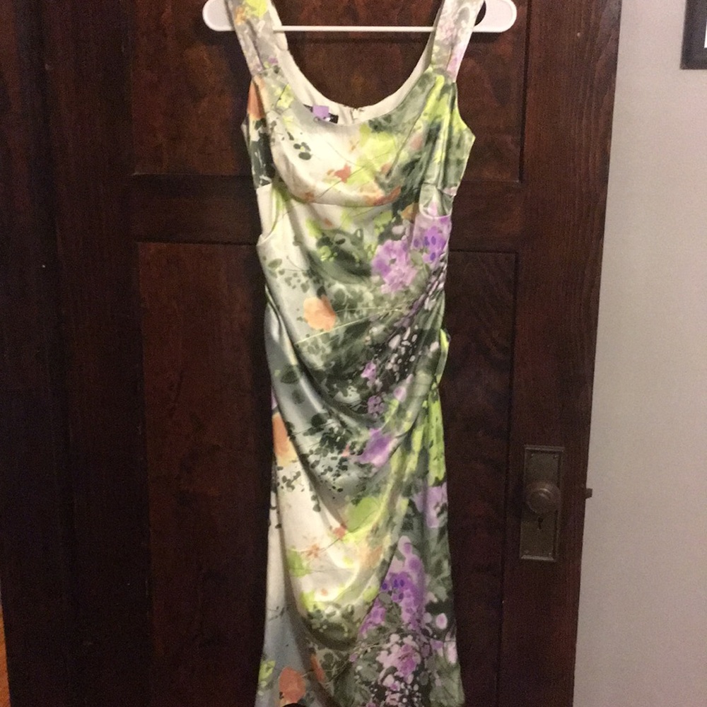 Floral earth tone fitted dress. Very sexy but classy. Desperately wish it still fit! Worn once and was dry cleaned!