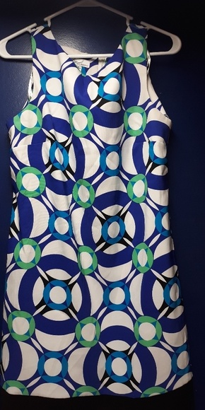 Very beautiful spring dress. Circle print in blue, green, white and black...