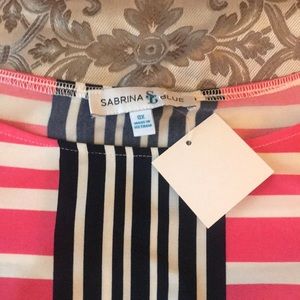 Lt pink, Dk pink, orange, white, navy blue.. comfy dress.. work, church, dressy! Too big for me it is 0x... fit sizes Xl-1x.. 3/4 sleeve.. 3/4 length way past the knee!