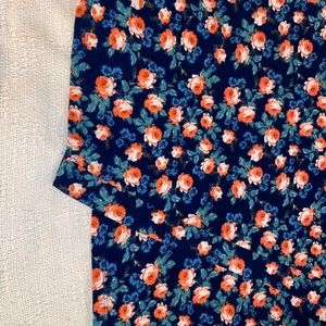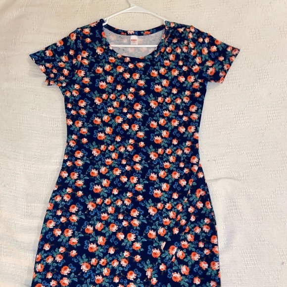 - Size L -Blue and Peach -Is comfortable -Form fitting - A little above the knee