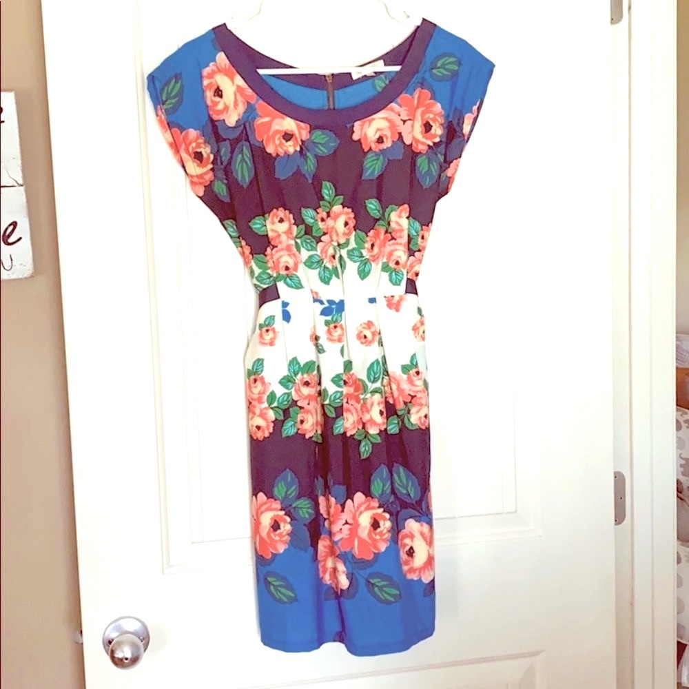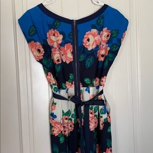 Floral dress • IT HAS POCKETS! • cap sleeves • zipper back • navy blue ribbon to tie around the back (accentuate the waist 💁🏻♀️) • size MEDIUM • 100% polyester