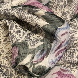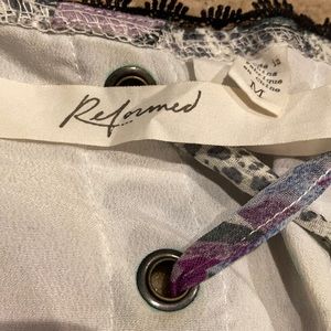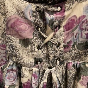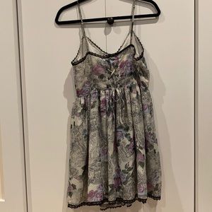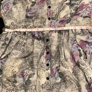 White and grey button up dress with blue and purple flowers Purchased at Urban Outfitters Great dress for spring!
