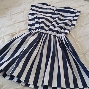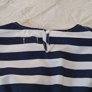 Sweet navy blue & white striped sleeveless dress with button closure on back. Bow accent at waist. Size 4/6