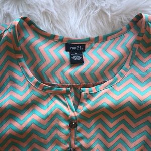Fun Spring Dress! Buttons are for show & texture down the front. Length hits above the knee. Color is coral & mint with a small elastic band around the middle.
