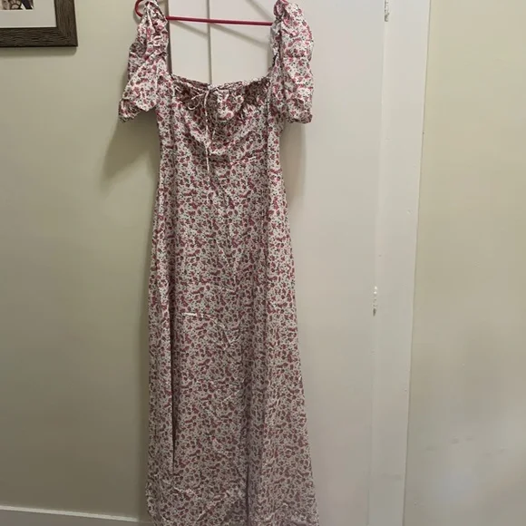 Beautiful spring maxi dress with square neck and slits of bottom of dress