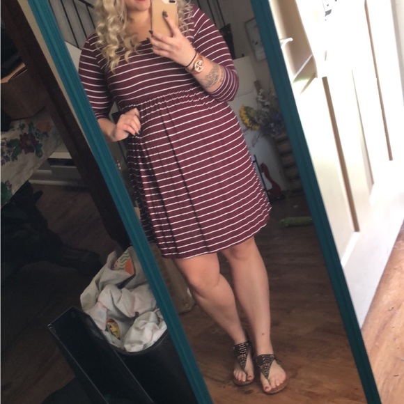 This is a nice spring dress. It is light weight and very stretchy. It says a large but it fit me when I was wearing a 1X.