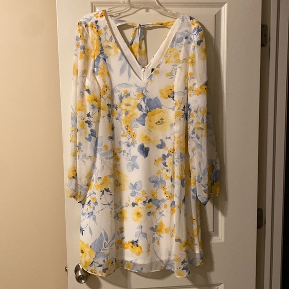 Great condition! Only worn 1-2 times and only getting rid of because my size has changed and no longer fits. Sheer arms. Comfy and flowy. Perfect for Easter!
