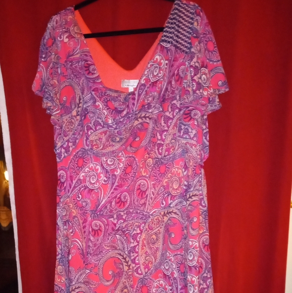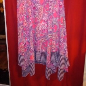 this spring inspired dress with paisley print and stripes unique coloring kind of peachy orange with navy