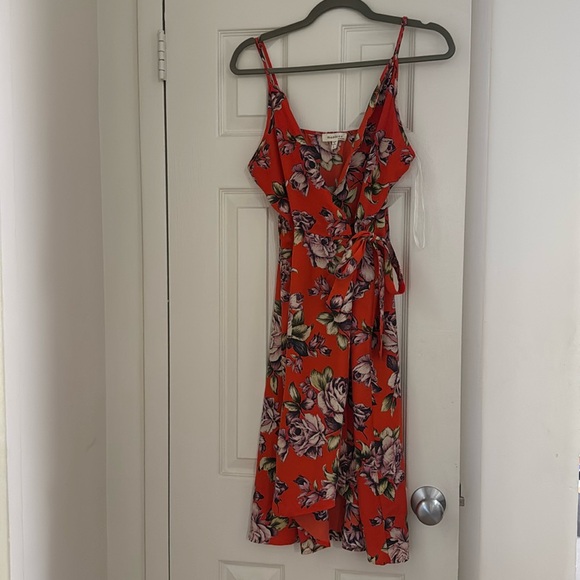 Super cute dress with a tie and inner button to keep it secure. Also has adjustable straps, worn in the past to weddings or parties