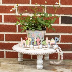 The Hippity Hop Easter decoration. The cutout features an array of festive pastel colors and displays florals and Easter egg art. This cutout sits freestanding, making it a great addition to any shelf or tabletop display for the Easter season. Measures 1.5” high by 8.75” wide by .25” deep.