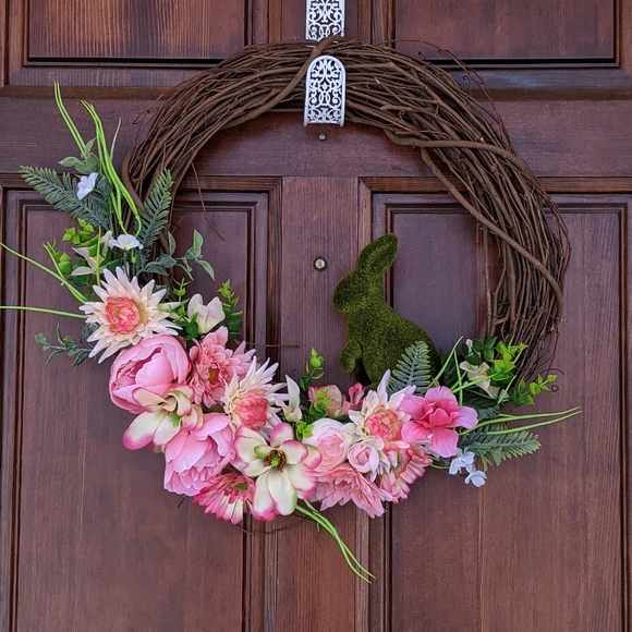Custom-Made Spring Easter Wreath! Perfect for Easter or Spring Decor! Features spring flowers and moss bunny!