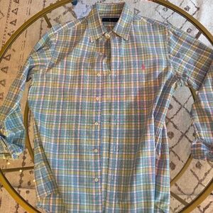 Very springy great shirt I loved - but I grew out of it. Well taken care of - dry cleaned. All ready to go!