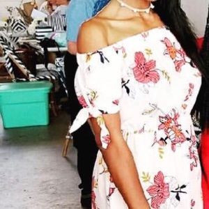 Off the shoulder floral with side slits! Perfect for a spring lunch or garden party. I wore it with Michael Kors wedges (sold here!), anklet and of course hot sunnies!