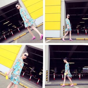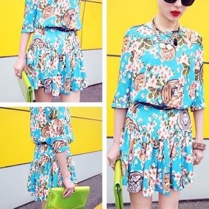 🆕 Spring Floral Blue Retro Chiffon Dress