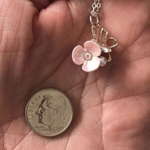 Spring Floral Flower Butterfly Antique Style Pendant Necklace Silver A NWT