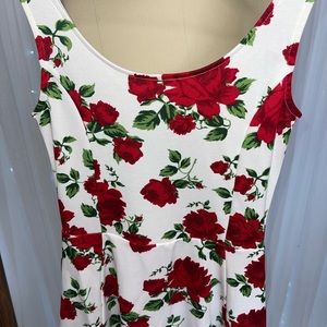 ABOUT THIS ITEM: A beautiful little dress for spring and summer. Has a true red rose design with green leaves. No visible stains, rips, tears etc.