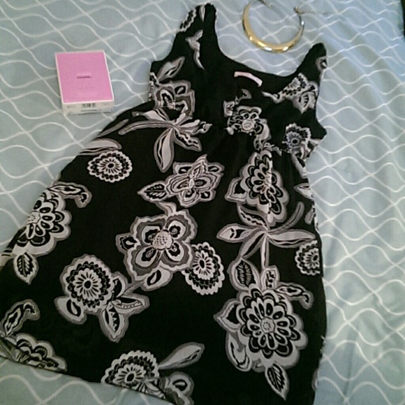 Black and White Flower dress Short Flows Comfortable Fitting Cleavage Area Light Black lining