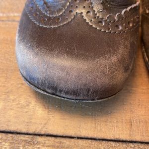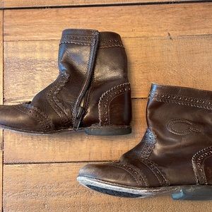 Size 26 which is equivalent to a US 9, BUT I think it’s a size 6 based on the measurements. Measure your kids feet to make sure. Lots of life left. Zip up on the side for easier entry.