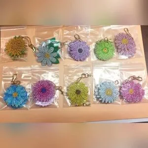 Enjoy these cute little Springtime Flower Keychains from our keychain selection. Each comes with a pom pom, wristlet or hand sanitizer holder (not shown).