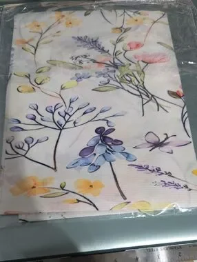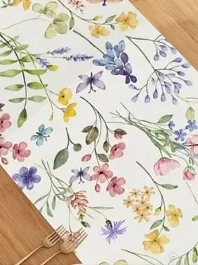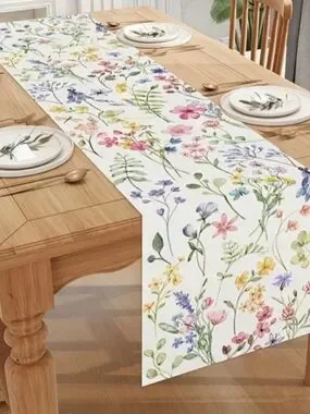 13"×48" polyesteroff white table runner with a spring floral design to dress up any table or buffet.