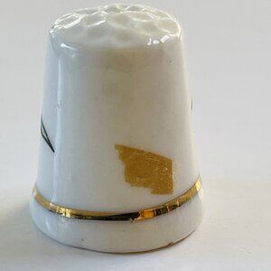 Spring Flowers Porcelain Thimble Tulip Gold Trim Floral Yellow Orange Decor Item