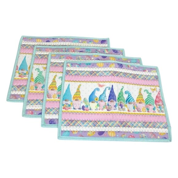 Spring Garden Easter Gnomes Table Placemats 4PC Set Eggs Butterflies Quilted