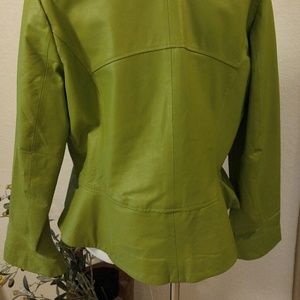 Stylish Spring Green Peplum Leather Jacket in great condition and ready to spruce up a girls night out!