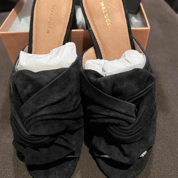 Brand new, never been worn Halogen sandals. Black suede, size 8M