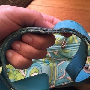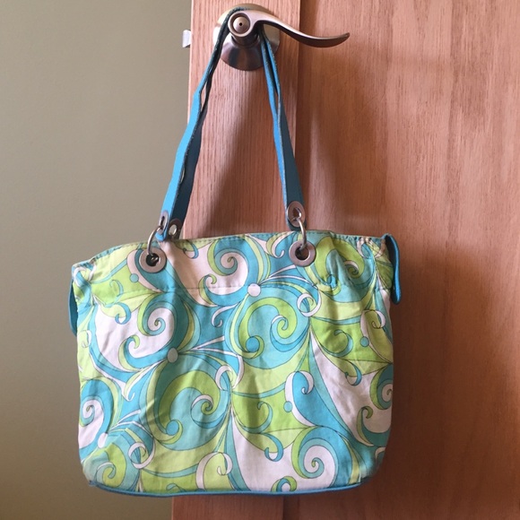 A totally cute handbag here in time for spring! 🌷🌺💐🌸 the only evidence of usage is the leather missing from the sides of the straps. It's a medium sized bag with one inside pocket. Not too big where things get lost and not too small to where nothing fits. It's just the right size! List price or best offer!