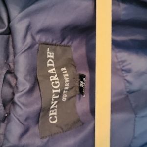 Wide lapel. Zipper compartment in the back for easy packing. **Belt is missing**