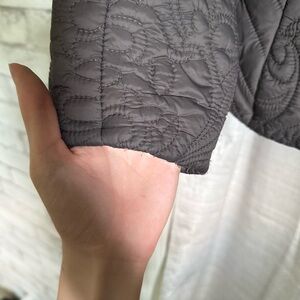 Lightly worn, some frayed threads on cuffs, light weight, zips up. 100% Synthetic material. Is not water resistant. 2 pickets.