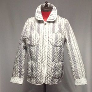 Reversible Spring Jacket.One side is white reversing to pinstripes.