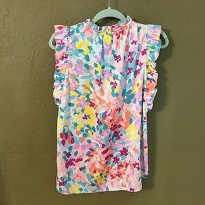 Kate Spade pieces have the best details! I love the ruffles all over this, the snaps inside to hold undergarments in place and OMG this print. Unfortunately these colors are awful on me 😆 never could quite the pull off bright spring prints. Great used condition. It is roughly 20 inches across the bust when laid flat