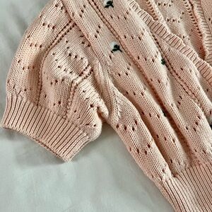 Stay cozy and stylish with this soft pink knit cardigan. Perfect for layering, this sweater adds a touch of elegance to any outfit.