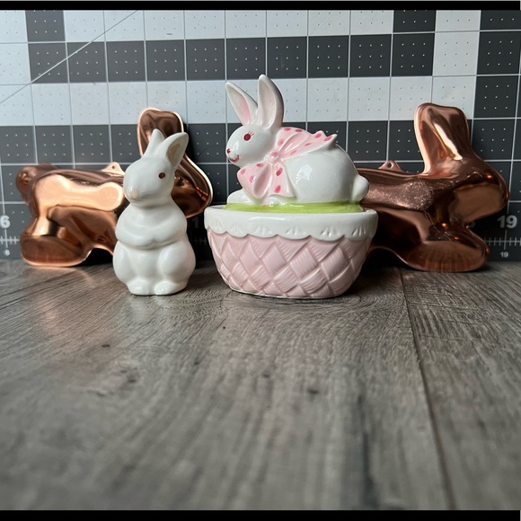 Spring Lefton Porcelain Rabbit In Basket & Standing 2 Rabbit shaped Molds