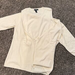 2 piece, elegant cream cardigan with a button-front design and sleeveless sweater.