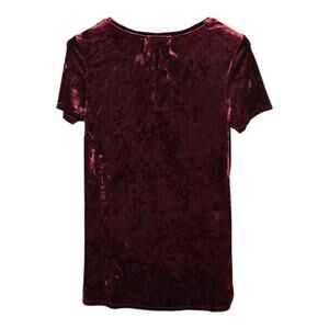 This crushed velvet tee in rich Bordeaux (Red) brings all the moody Whimsigoth vibes with a touch of vampy glam. Featuring a soft stretch fit, v-neckline, hi-low hem and chest pocket, it’s the perfect piece to layer under jackets or pair with skinnies for an effortlessly edgy look. A trend-right staple for dark romantic, artsy, or witchy style. In excellent preowned condition.