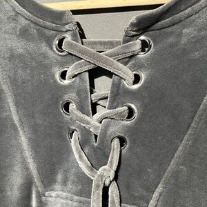Spring + Mercer Gray Super Soft Velour Lace Front Top Shirt Sweatshirt