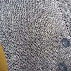 Big buttons that go up to/right below bust line, two pockets on the front. There some pilling shown in the 3rd and 4th photos. Very clean back. Solid cardigan.