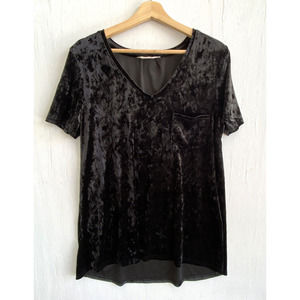 Spring & Mercer Velvet Legging Tee Black Soft Velvet Tunic Top Pocket Size L