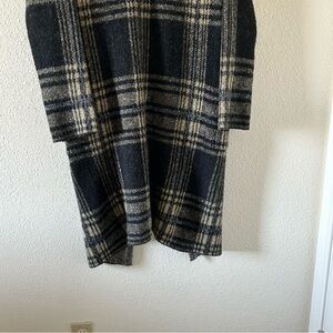 Spring & Mercer Women’s Knit Longline Cardigan Small Plaid Black Beige Open Front In great condition/ stretchy soft and cozy/ has pockets